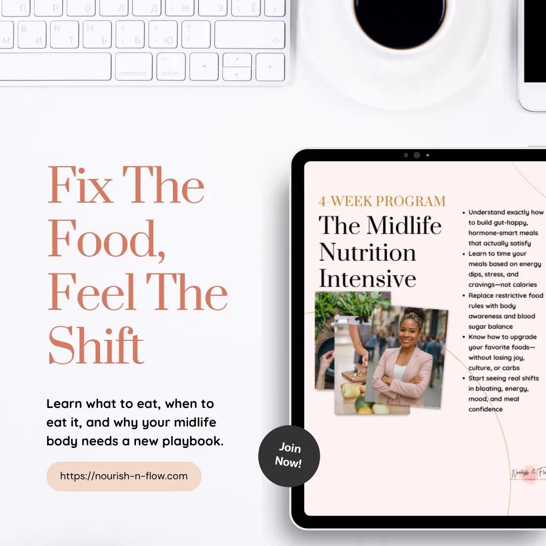 Maybe you’re navigating perimenopause with energy dips that hit out of nowhere. Maybe you’re bloated after every meal, even though you’re “eating clean.” Or maybe you’re just… over it—and craving clarity.